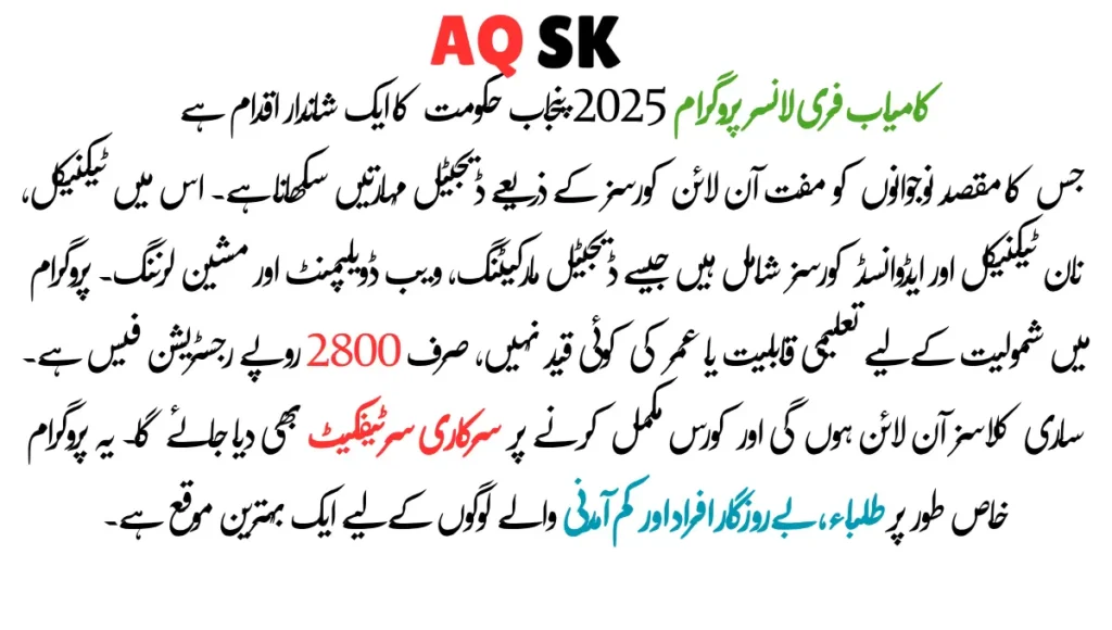 The Kamyaab Freelancer Program 2025 is a brilliant initiative of the Punjab government aimed at teaching digital skills to the youth through free online courses. It includes technical, non-technical and advanced courses such as digital marketing, web development and machine learning.